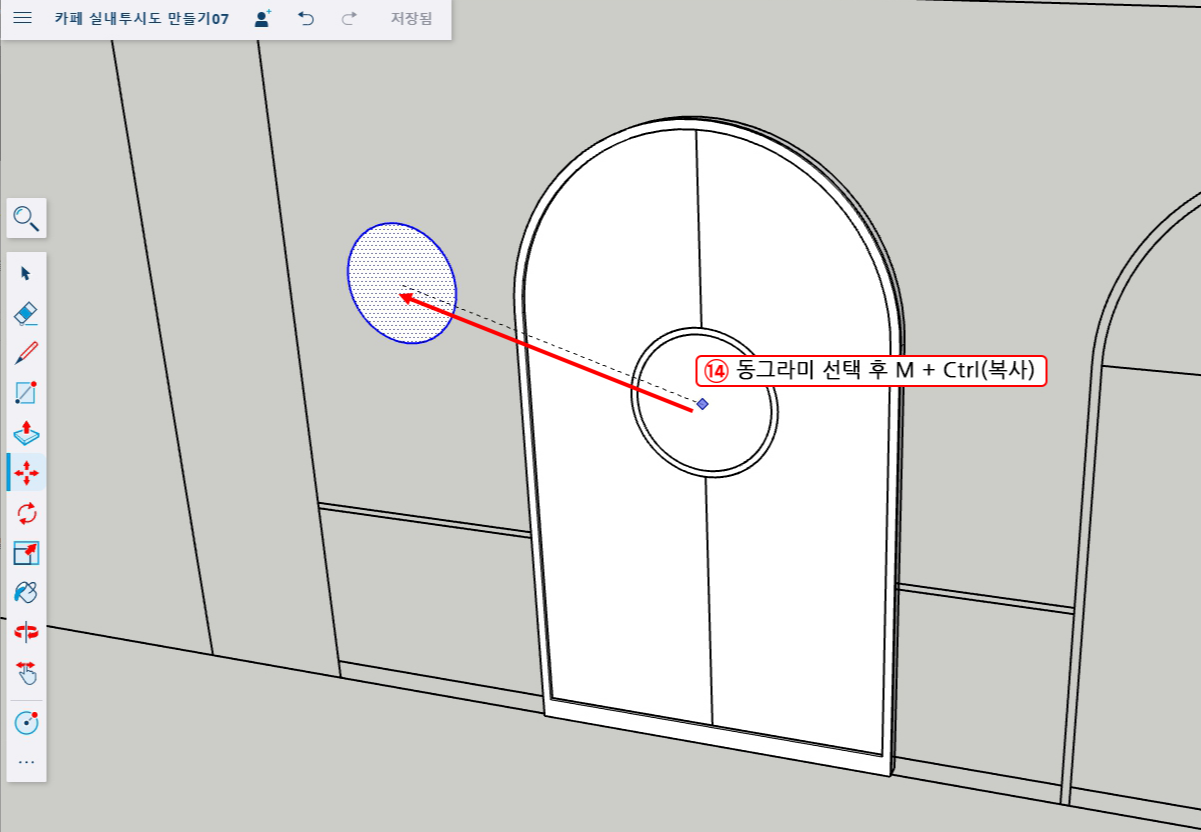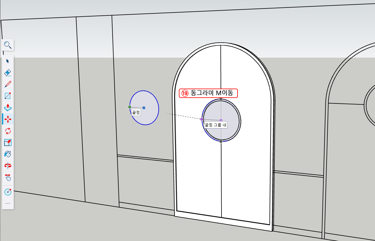 19. 복사해 둔 동그라미를 선택한 후 M을 이용하여 원래 위치로 이동시켜 준다.
