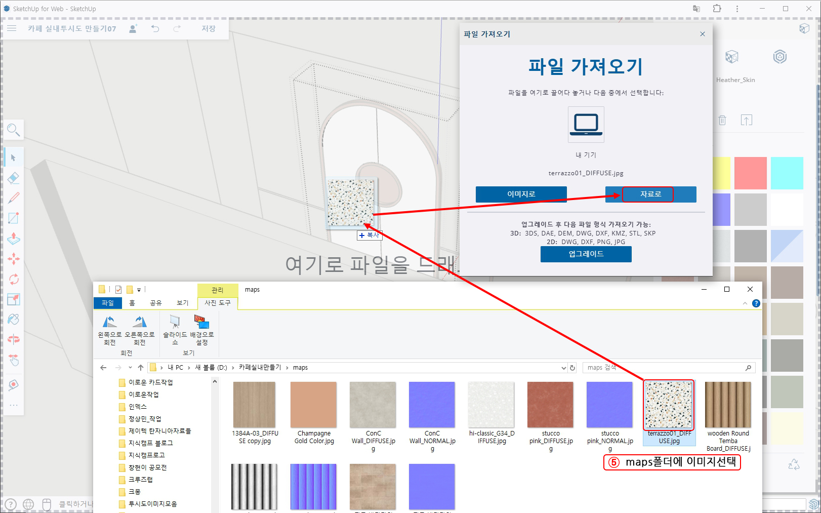 5. maps에서 terrazzo01_DIFFUSE.jpg을 선택하여 화면상에 넣어준다.