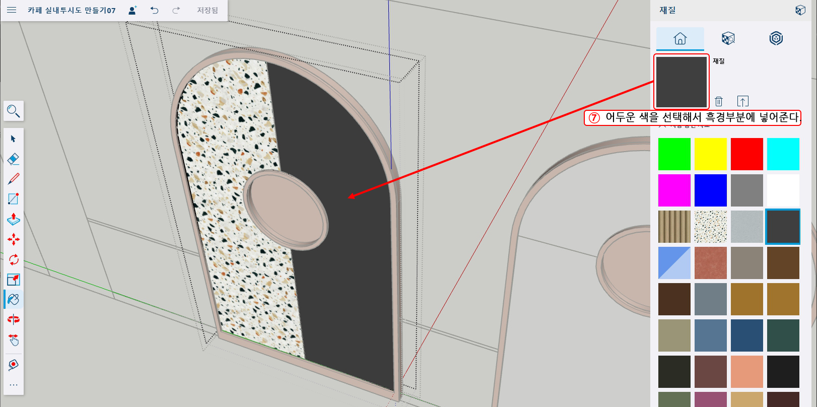 7. 재질트레이에서 어두운 색을 선택하여 terrazo재질 옆에 넣어준다.