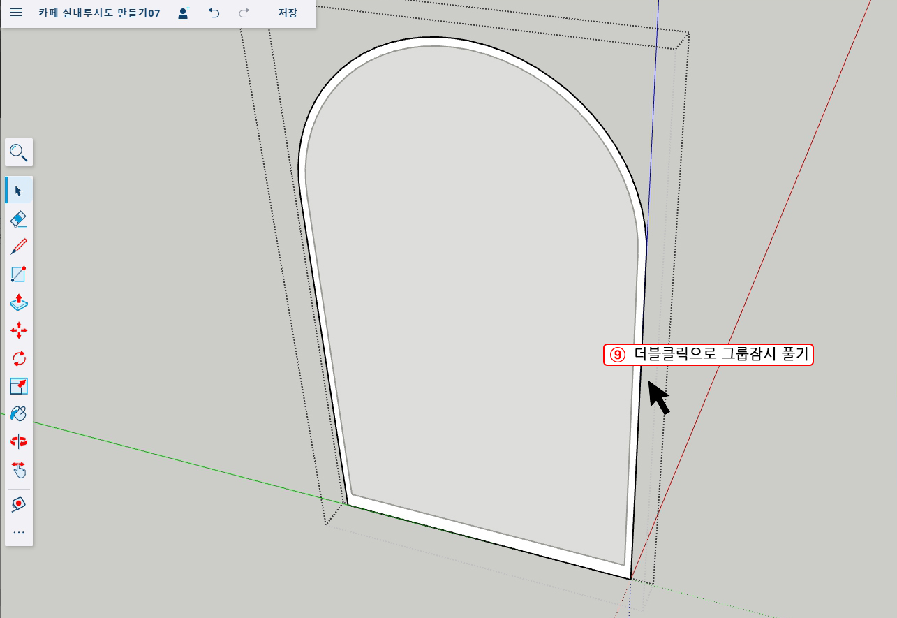 9. 그룹물체(테두리)를 더블클릭하여 그룹을 잠시 풀어준다.