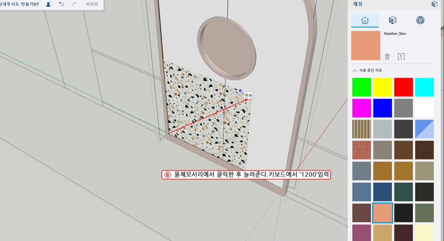 6. 그림이 들어오면 물체의 모서리에 고정시켜 그림은 키워준다. 이때 키보드에서 '1200'을 입력해 준다.(이미지 크기를 1,200mm 크기로 반복시킬 것이란 말이다.)