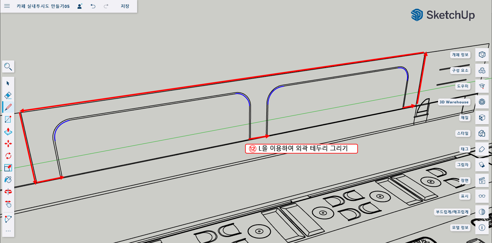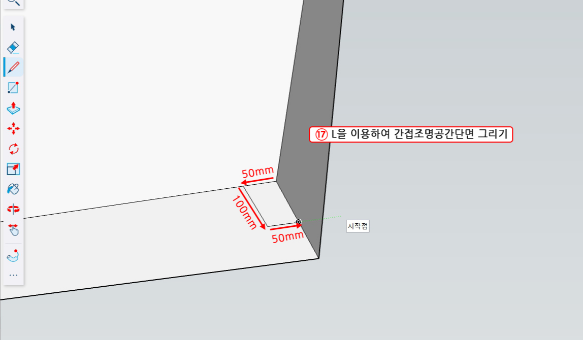 17. 위에서 단순화하기로 한대로 간접조명이 될 면을 선으로 그려준다.