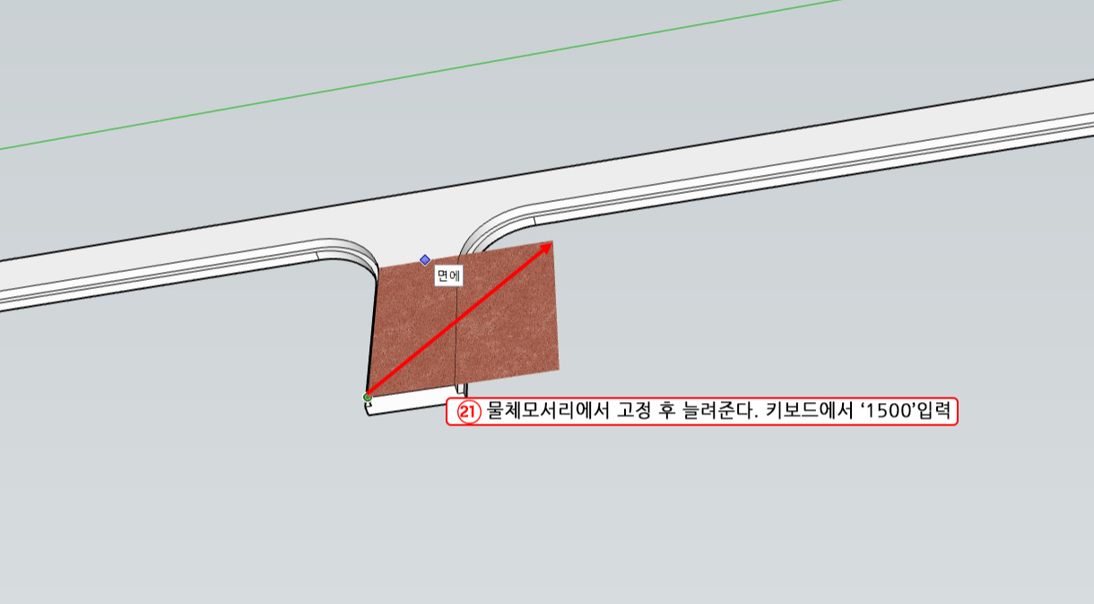 21. 그림이 들어오면 물체의 모서리에 고정시켜 그림은 키워준다. 이때 키보드에서 '1500'을 입력해 준다.(이미지 크기를 1,500mm 크기로 반복시킬 것이란 말이다.)