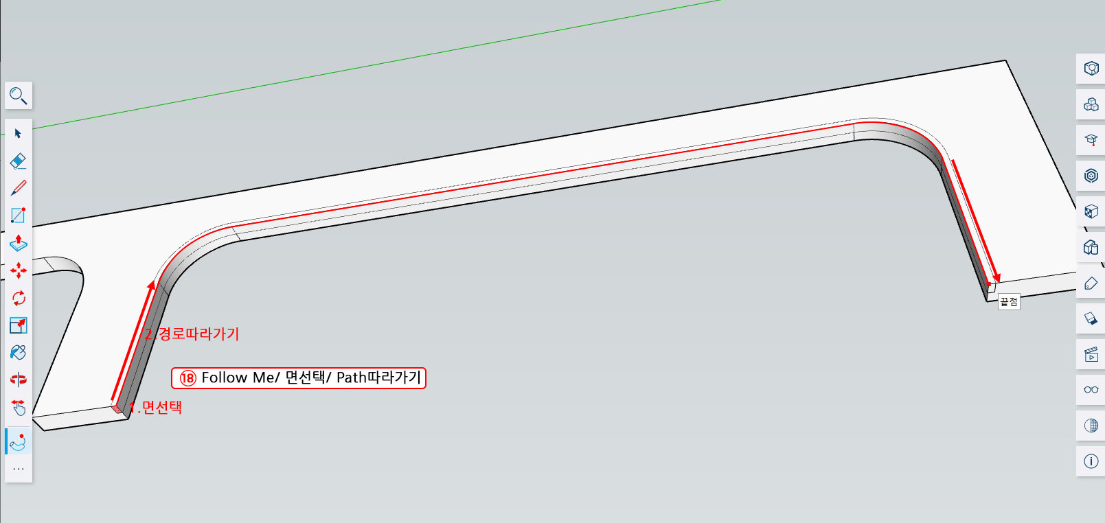 18. Follow Me를 선택하고 간접조명이 될 면을 클릭하고 아치라인을 따라가 준다.