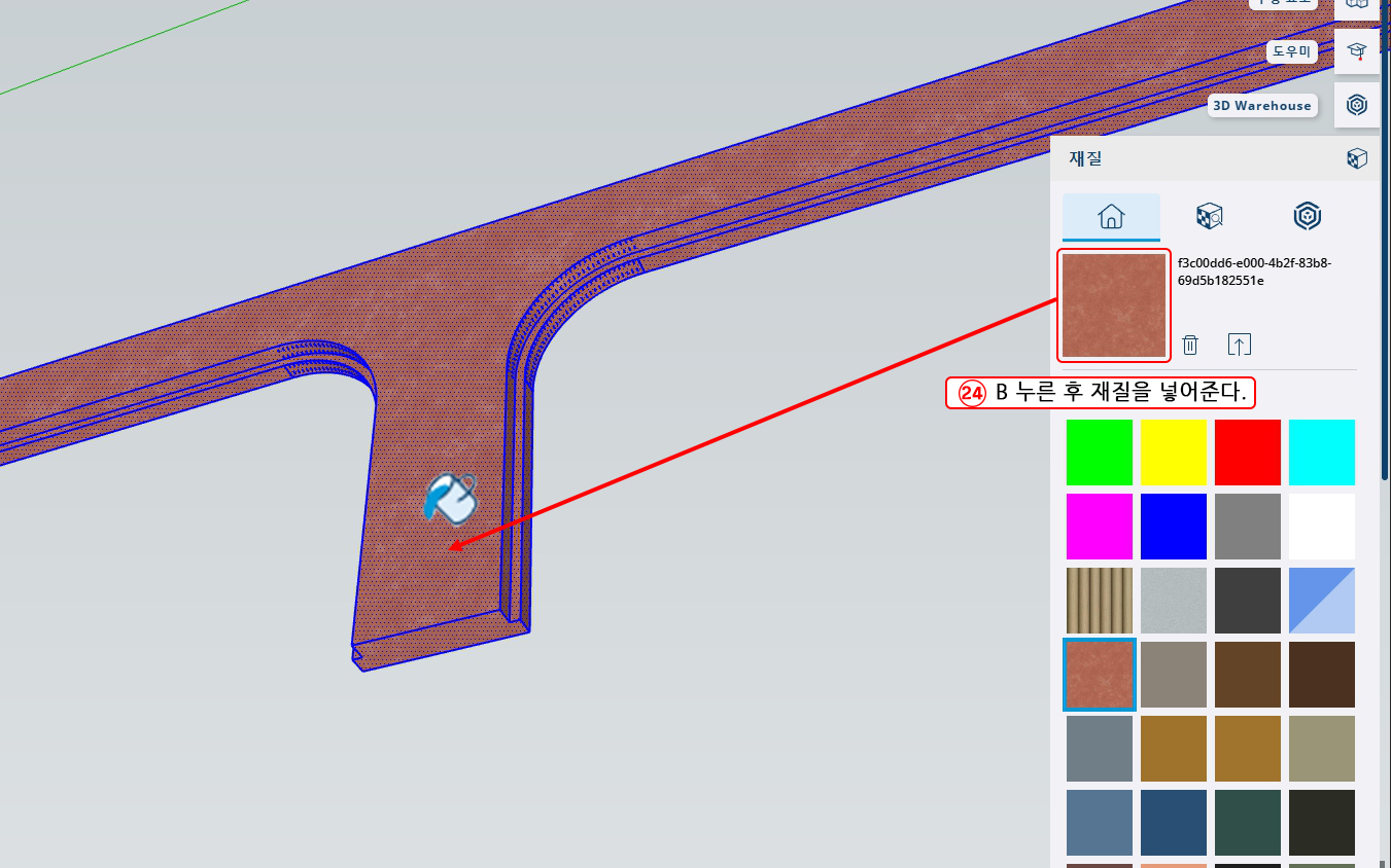24. B를 누른 후 stucco pink재질을 넣어준다.