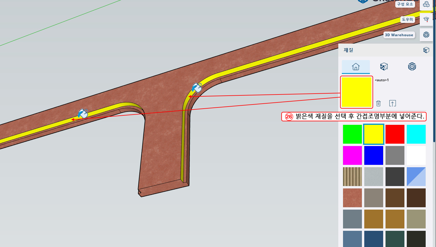 26. 재질편집기에서 밝은 색 재질을 선택하여 간접조명이 될 부분에 넣어준다.(나중에 D5 Render에서 조명역할을 할 것이다.)